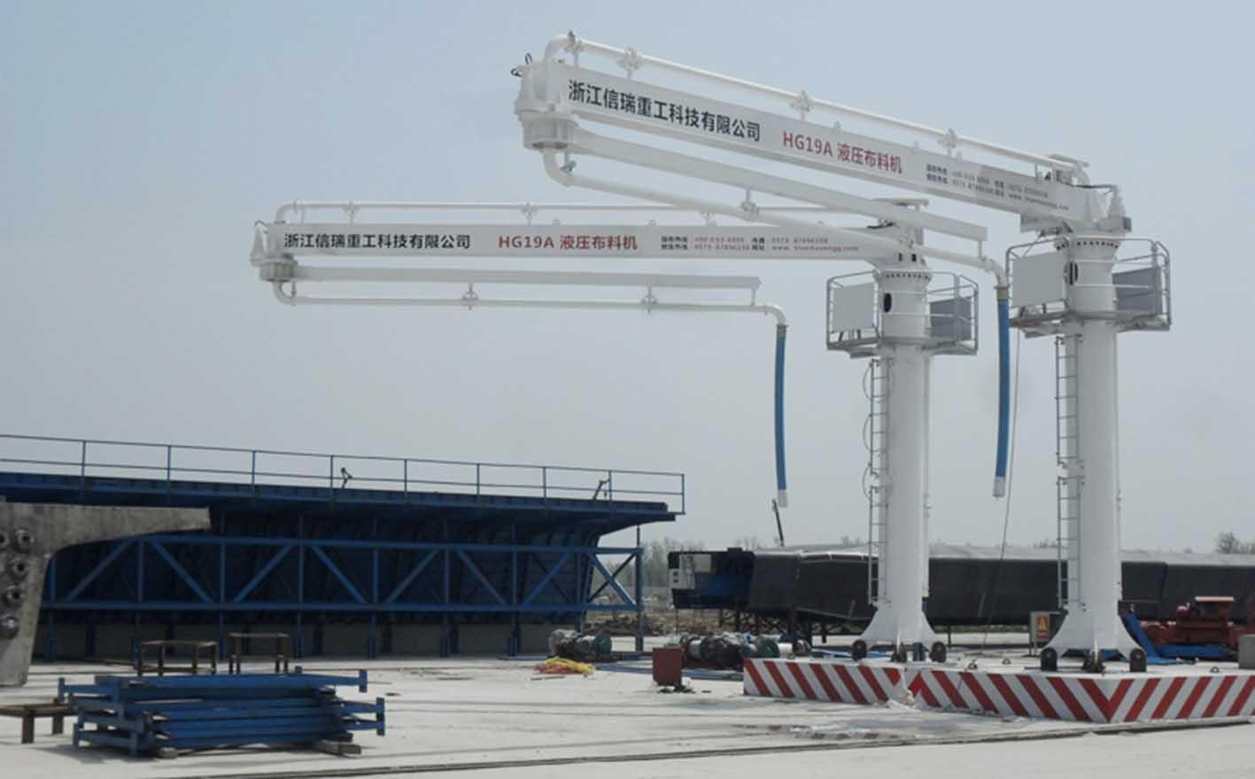1.本產(chǎn)品為預(yù)制梁場專用布料機(jī),臂架為輕量化設(shè)計,兩節(jié)臂水平旋轉(zhuǎn),全液壓驅(qū)動,結(jié)構(gòu)